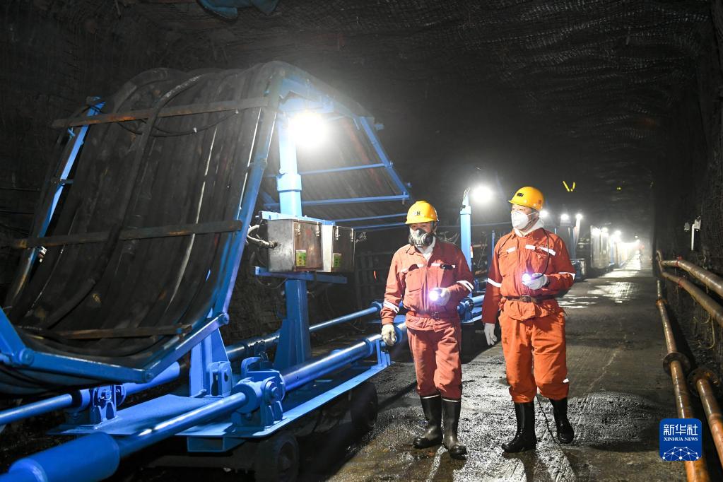 工人在龙王沟煤矿矿井下巡查设备运行情况(9月20日摄)。
