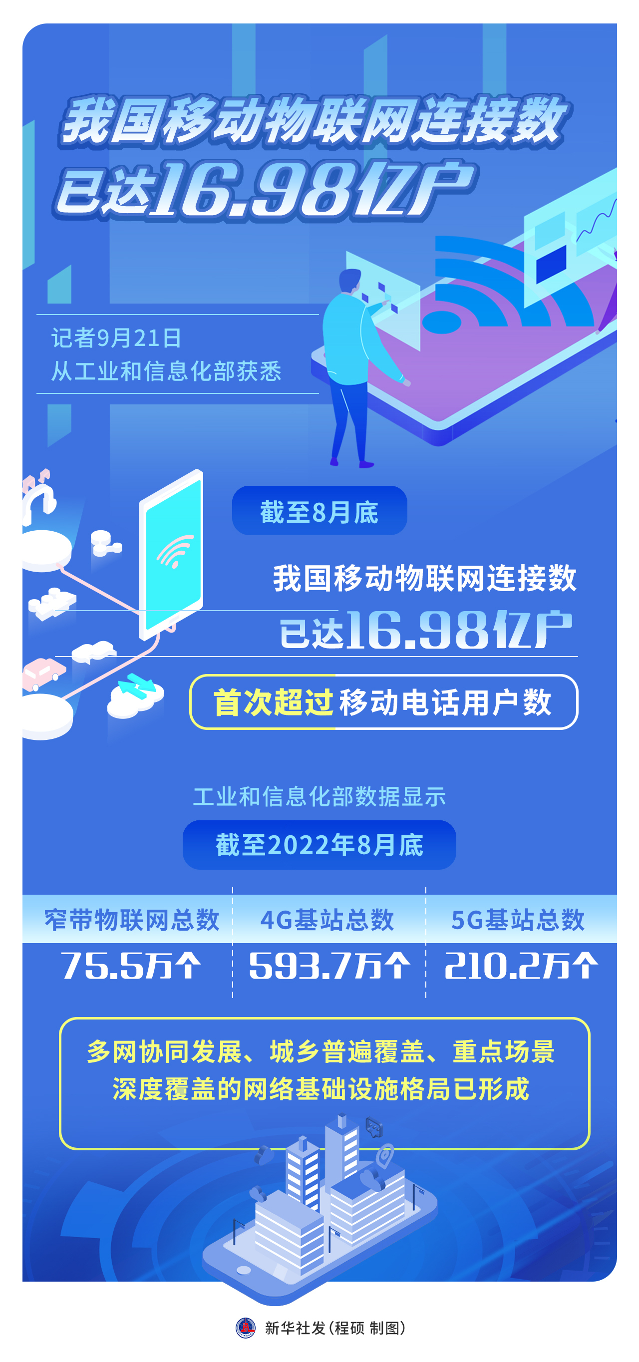 新华社北京9月21日电(记者张辛欣)记者21日从工业和信息化部获悉,截至8月底,我国移动物联网连接数已达16.98亿户,首次超过移动电话用户数。