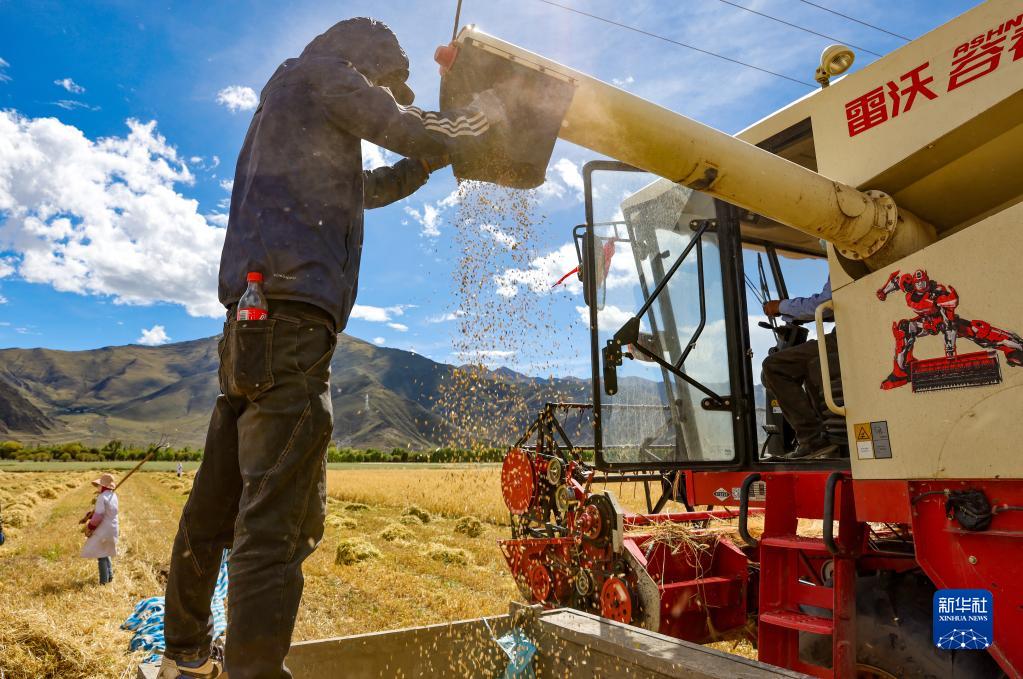 第五个中国农民丰收节在即,西藏自治区拉萨市林周县的田间地头一片繁忙。据了解,林周县目前累计粮食收获面积为12.43万亩,已收获秋粮总产量预估6万吨,丰收在望。