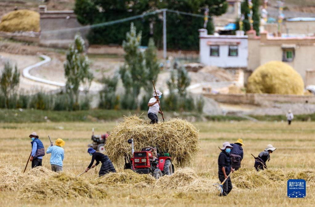 第五个中国农民丰收节在即,西藏自治区拉萨市林周县的田间地头一片繁忙。据了解,林周县目前累计粮食收获面积为12.43万亩,已收获秋粮总产量预估6万吨,丰收在望。