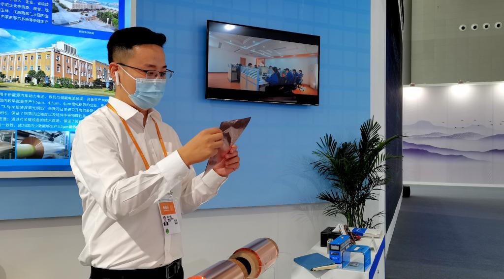 “铜箔是生产新能源汽车动力电池所需的重要材料。”展台工作人员徐一帆说,该公司致力于高端材料研发生产,订单增长稳定,2021年被认定为专精特新“小巨人”企业。
