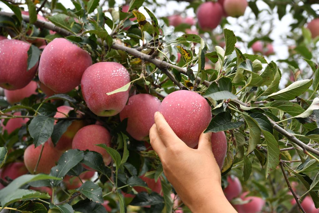 时近秋分,黄土高原云卷云舒,层林渐染。陕西漫山遍野的苹果园,处处可见红彤彤的果子,丰收的喜悦挂在果农的眉梢。