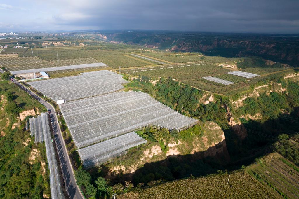 延安市洛川县旧县镇发展的苹果产业(9月20日摄,无人机照片)。新华社记者邵瑞 摄