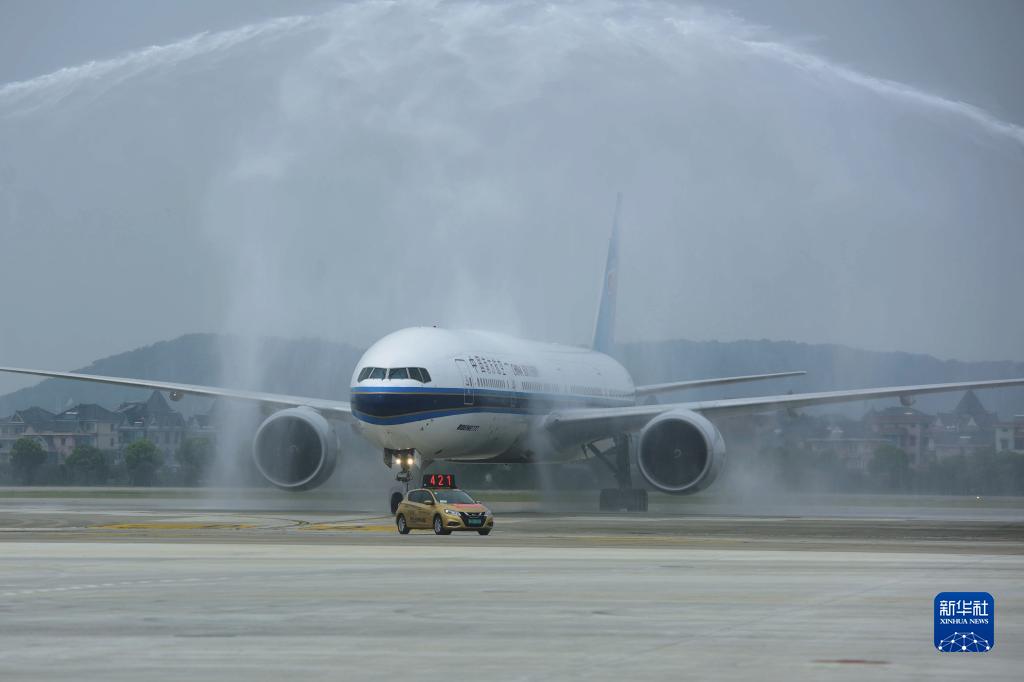 9月22日,杭州萧山国际机场三期T4航站楼首个进港航班通过水门。