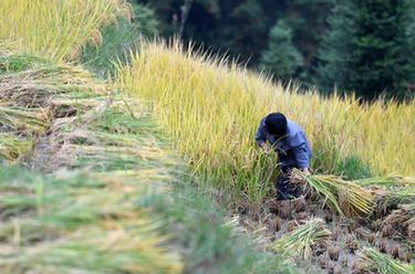 新华全媒+丨千年梯田收稻时