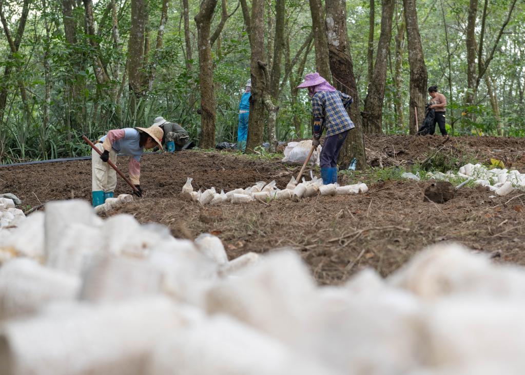 海南白沙:食用菌种植忙