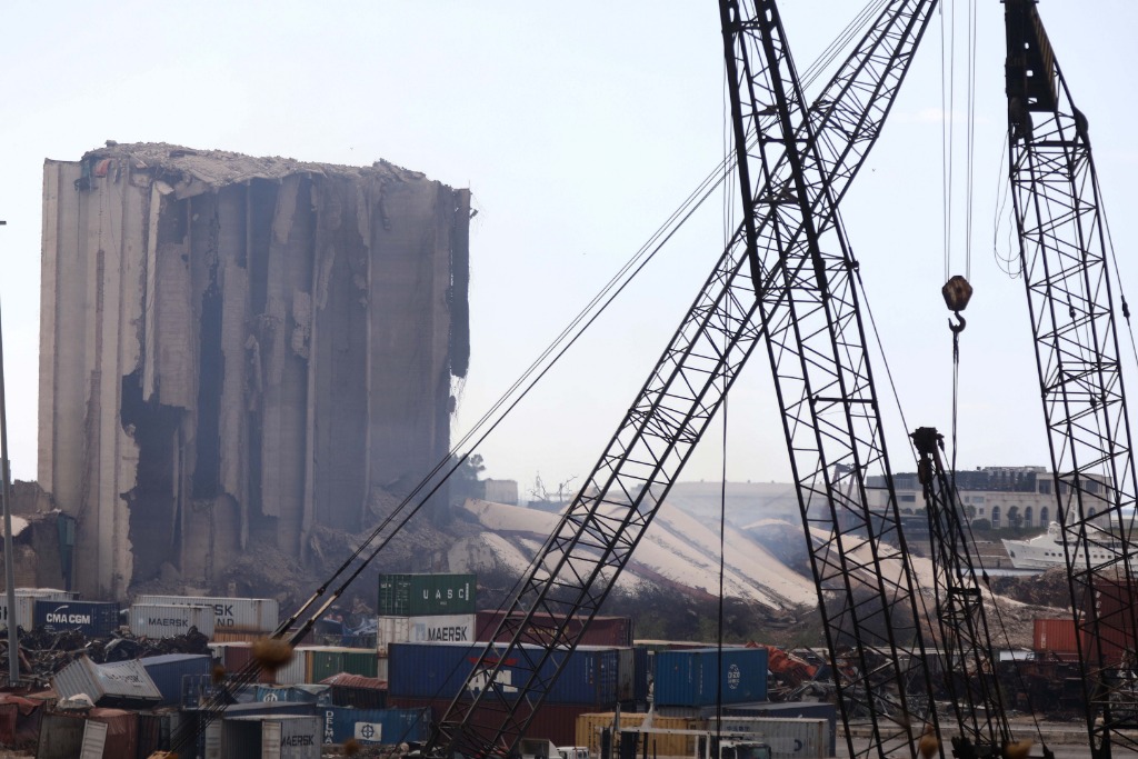 这是8月23日在黎巴嫩贝鲁特的港口拍摄的发生垮塌的区域。新华社发(比拉尔·贾维希摄)