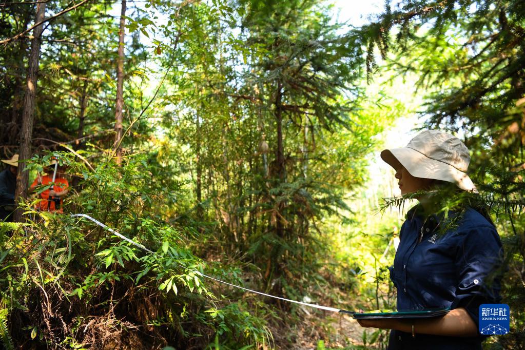 9月22日,白拉曲珍和同事在位于广东韶关乐昌市张溪村的生态监测样地工作。