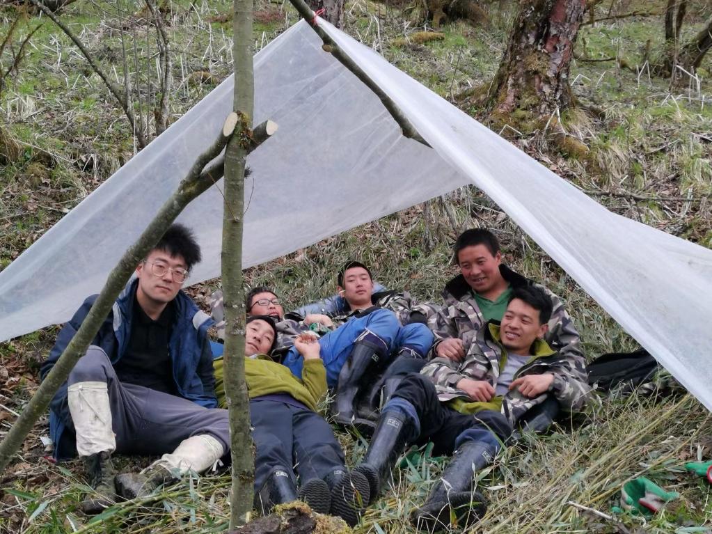 追“猫”间隙,吴代福拍下队员们支个简易帐篷休息的瞬间。