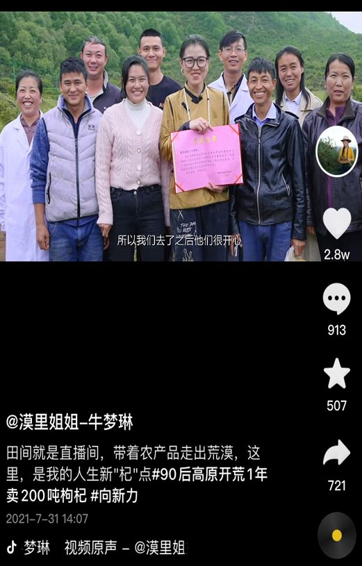 越来越多的粉丝留言问牛梦琳,如何购买她家种植的枸杞,在经历了几个月的准备工作后,2020年初,牛梦琳第一次直播销售枸杞。