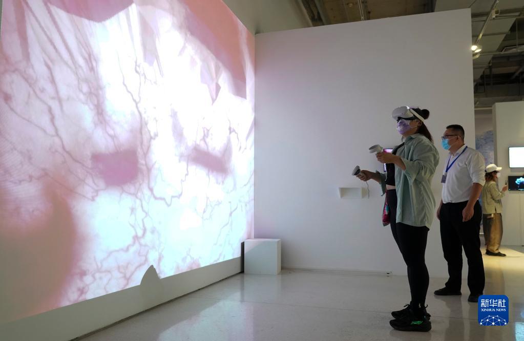 9月24日,参观者在2022亚洲数字艺术展上体验艺术作品。