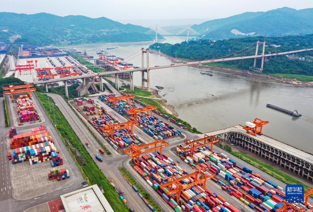 这是重庆果园港一带景象(2022年5月24日摄,无人机照片)。新华社记者王全超摄