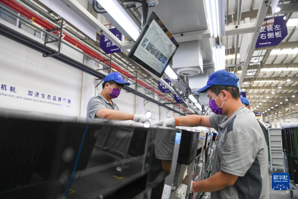 9月25日,工人在重庆海尔洗碗机互联工厂作业。