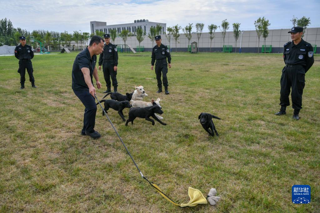 近日,在山东省聊城市公安局警犬训练基地,不同类型警犬在训导员带领下开展专项训练,提高专业技能。该基地今年6月投入使用,建有标准化工作犬犬舍64间、草坪训练场、林地搜索训练场、警犬技术综合楼等高标准配套设施,为提高警犬综合素质提供可靠保障。