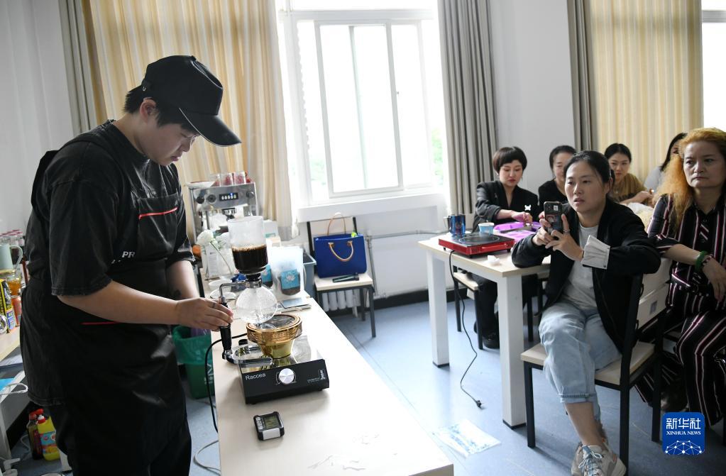 9月22日,在“无声咖啡师”公益培训课上,听障咖啡师周洁为学员们演示用虹吸壶制作咖啡。