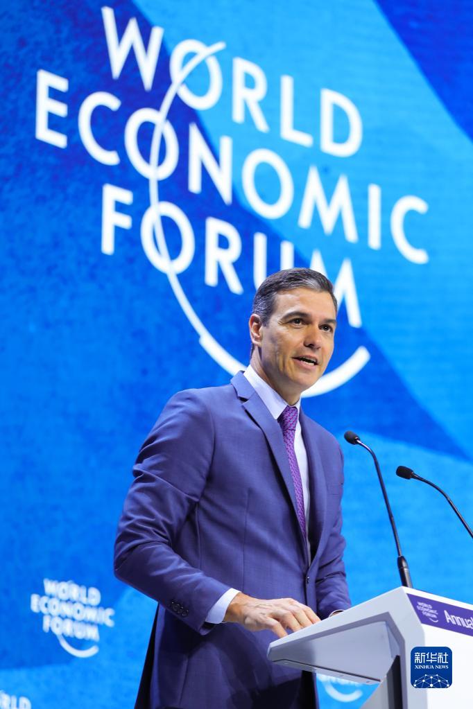 西班牙首相桑切斯9月25日表示,他感染了新冠病毒。这是2022年5月24日,在瑞士达沃斯,西班牙首相桑切斯出席世界经济论坛年会时致辞。新华社记者 郑焕松 摄