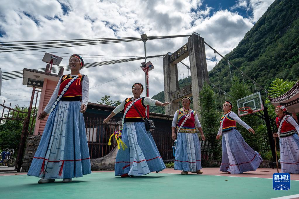 2022年9月14日,怒江州福贡县石月亮乡拉玛底村村民自发组成的“奋进合唱团”在村委会排练节目。新华社记者 江文耀 摄