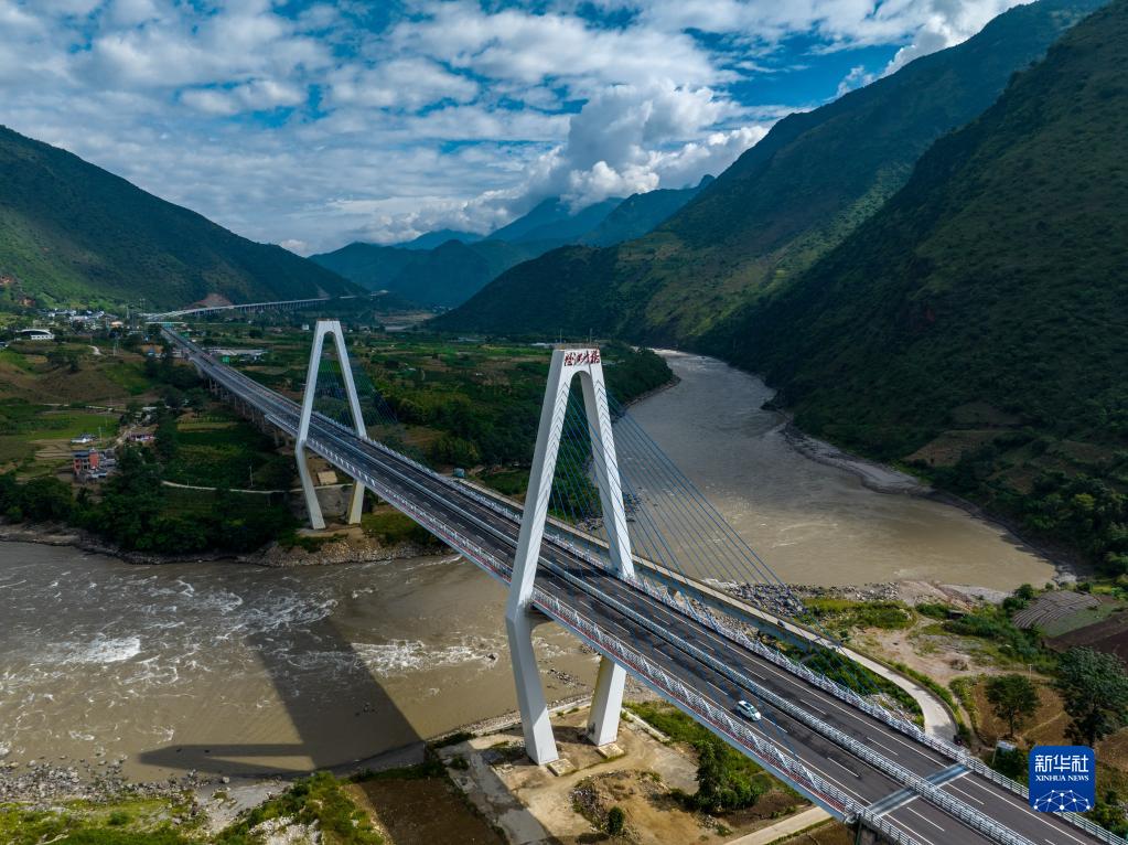 这是2022年9月15日拍摄的云南保(山)泸(水)高速怒江大桥。该高速是怒江州的首条高速公路(无人机照片)。新华社记者 江文耀 摄