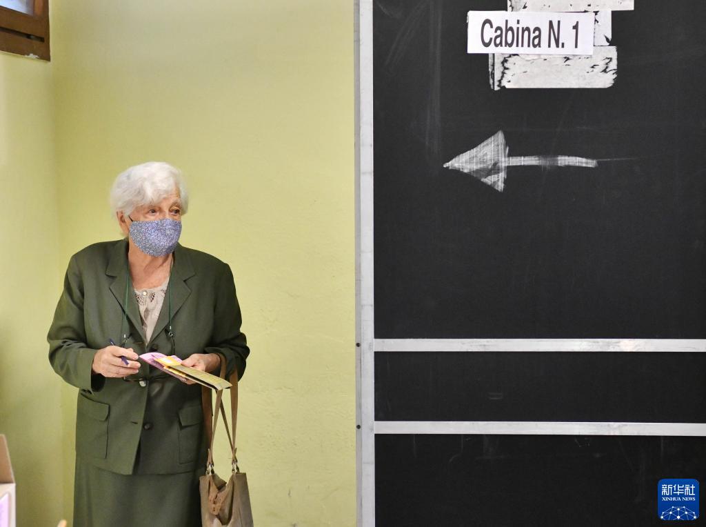 9月25日,在意大利罗马一处投票站,一名选民准备投票。