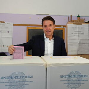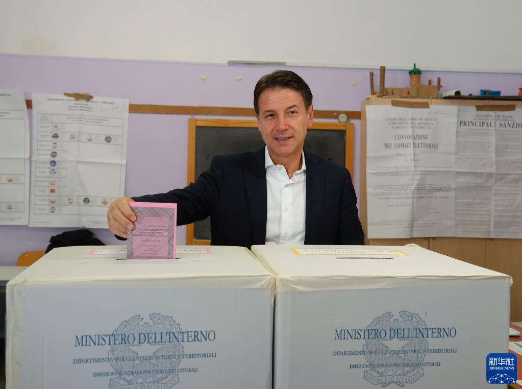9月25日,意大利前总理、“五星运动”党党首孔特在罗马投票。新华社发