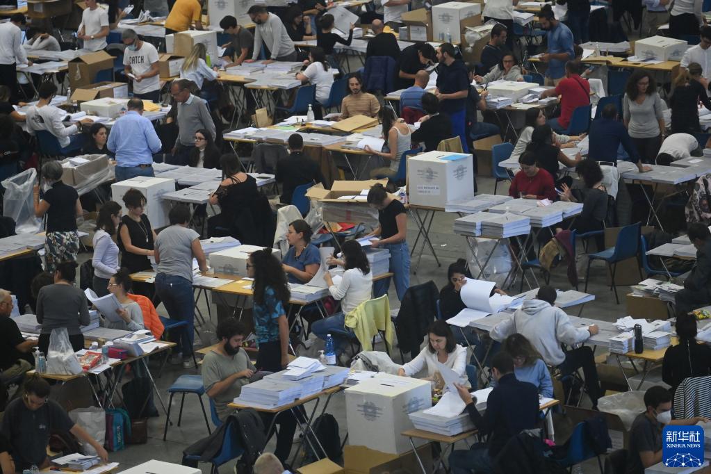 9月25日,在意大利博洛尼亚,工作人员对居住在国外的意大利公民的选票进行统计。新华社发(贾尼·斯基基 摄)