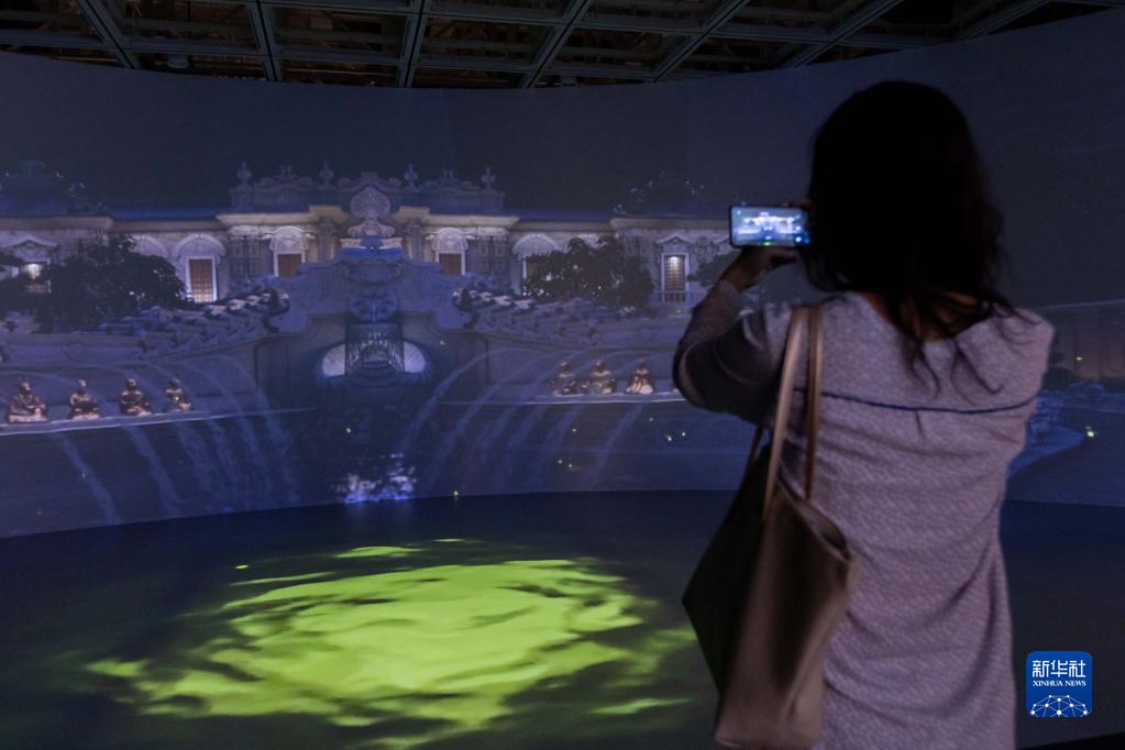 9月26日,观众在观看“重回海晏堂”沉浸式交互秀。新华社记者 王翔 摄
