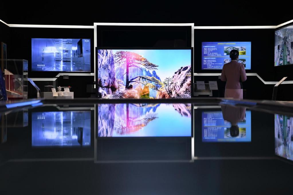 2021年4月26日,中国(安徽)科技创新成果转化交易会上展示的智能显示终端产品。新华社记者 张端 摄