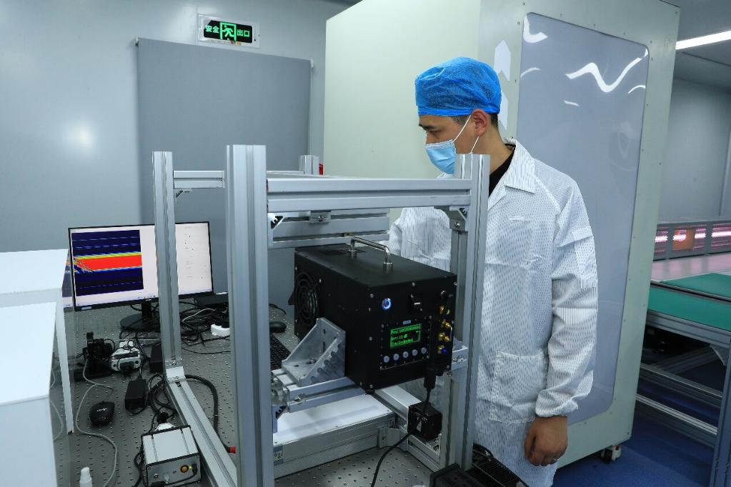 安徽中科太赫兹科技有限公司工作人员演示工业级主动式太赫兹扫描成像检测系统。(安徽中科太赫兹科技有限公司供图)