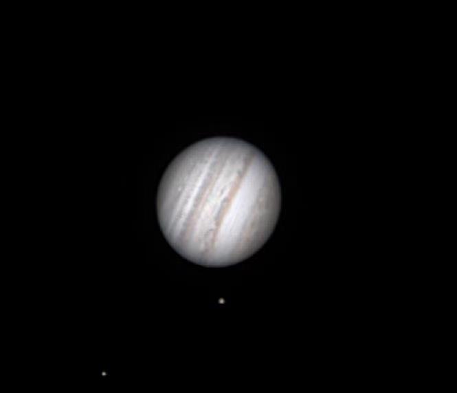 广东省天文爱好者周志伟2020年7月20日在珠海市拍摄的木星及其两颗卫星。(本人供图)