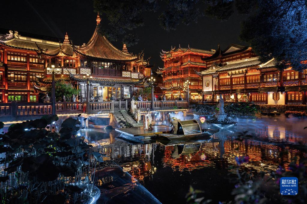 金秋时节,夜幕降临的上海豫园商城上演江南仲秋游园场景,给市民和游客带来一场浪漫的国风沉浸式体验。
