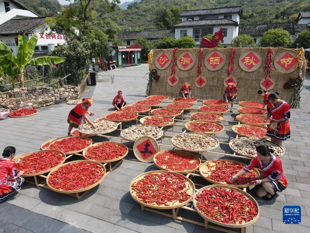 这是在湖南省郴州市汝城县沙洲瑶族村拍摄的晒秋节现场(2022年9月15日摄)。新华社发(朱勇刚 摄)