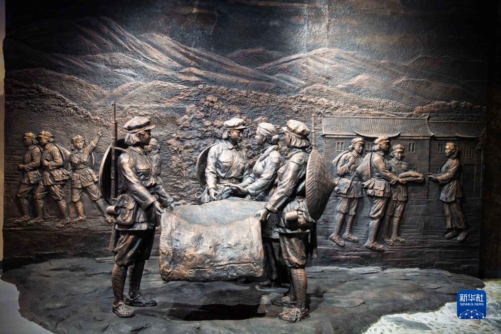 这是在湖南省郴州市汝城县沙洲瑶族村“半条被子的温暖”专题陈列馆拍摄的“半条被子”故事场景雕塑(2020年9月17日摄)。新华社记者 陈思汗 摄