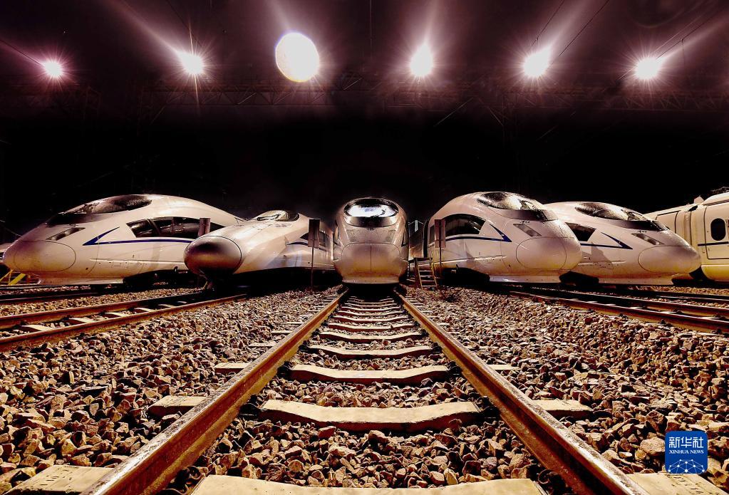 动车组列车停靠在郑州动车段停车场(2016年9月6日摄)。新华社记者 李安 摄