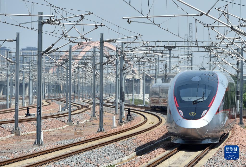 济郑高铁郑州首发G9206次列车驶出郑州东站(2022年6月20日摄)。新华社记者 李嘉南 摄