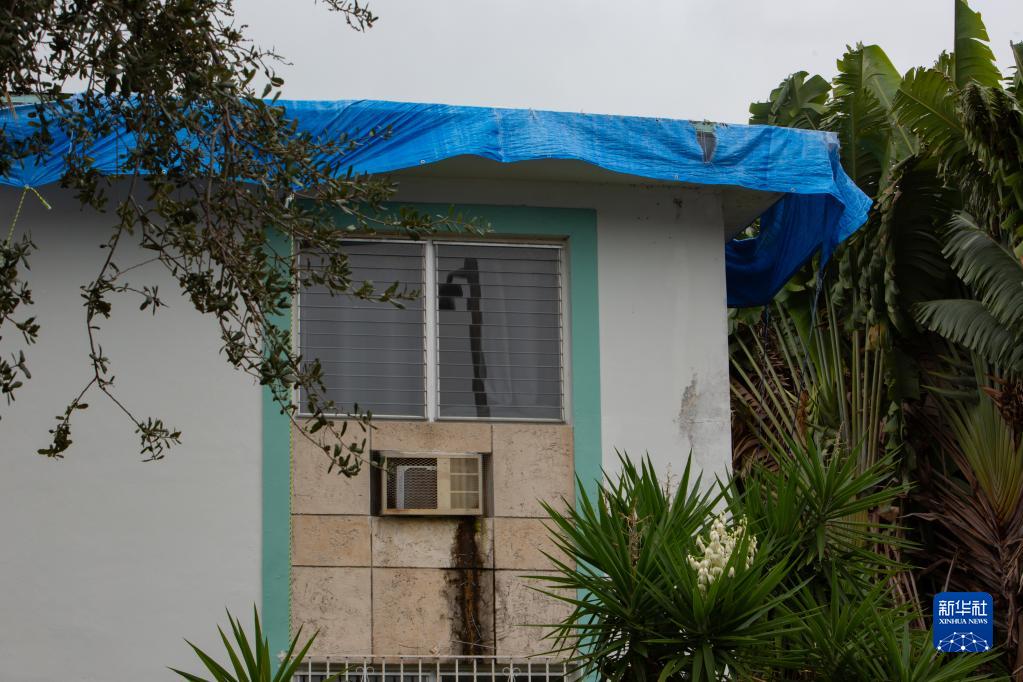 9月27日,在美国佛罗里达州迈阿密,一处建筑用防水材料加固了屋顶。新华社发(莫妮卡摄)
