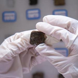 考古工作者在检查云南河泊所遗址出土的封泥(9月21日摄)。新华社记者江文耀摄
