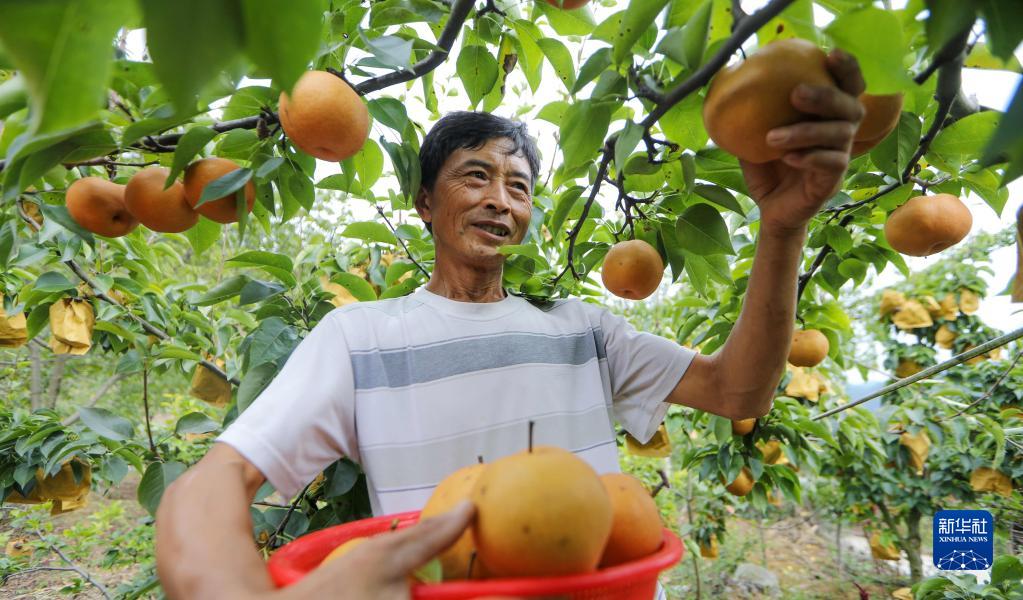 9月29日,果农在贵州省贵阳市开阳县石头村采摘黄梨。