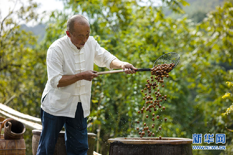 9月29日,安徽省宣城宁国市南极乡龙川村,村民在加工制作山核桃。