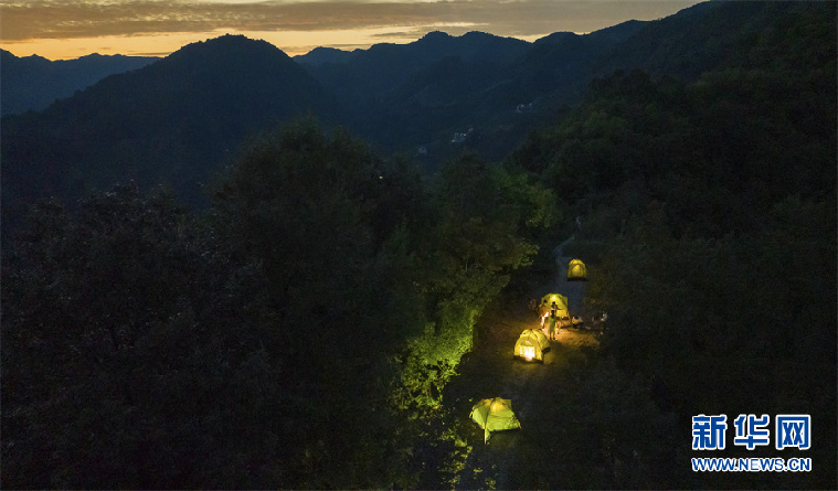 9月29日晚,安徽省宣城宁国市南极乡龙川村,游客们体验高山露营。