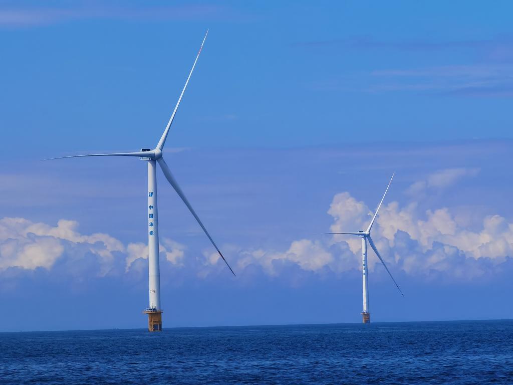 这是2021年7月19日拍摄的华能(庄河)风力发电有限责任公司建设的海上风电场址。(新华社发)