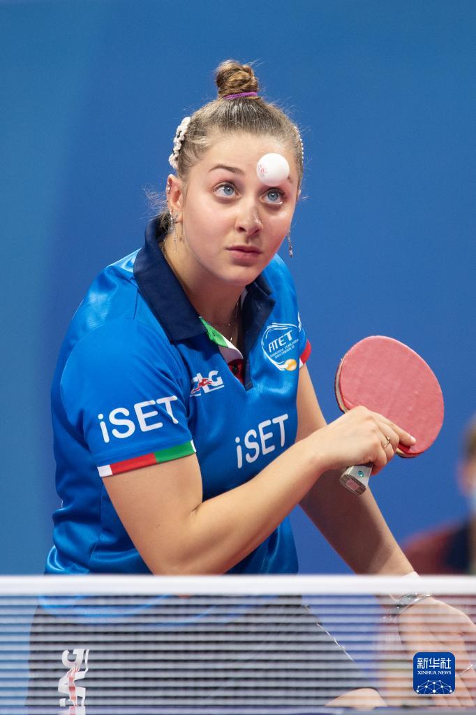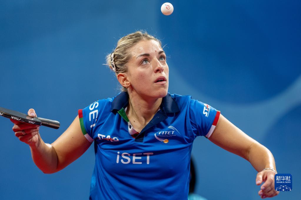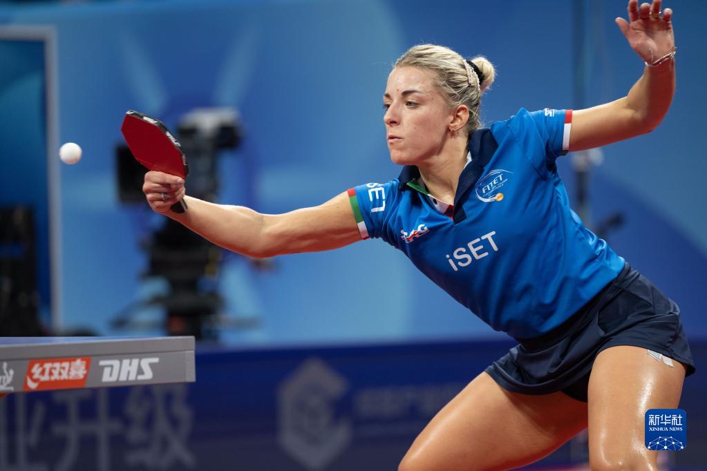 9月30日,意大利队选手妮蔻·阿利亚在比赛中回球。新华社记者 胥冰洁 摄