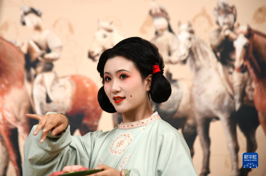 9月30日,身着复原唐装的演员在大唐金乡县主展开展仪式上表演。