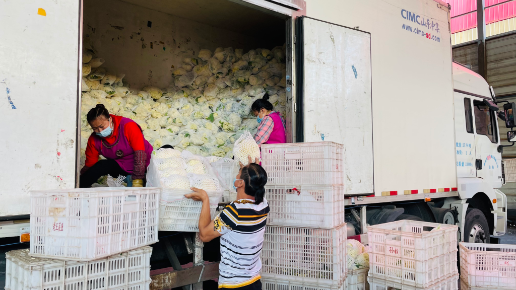 寿光地利农产品物流园里,商户在忙着卸车。新华社记者陈国峰 摄