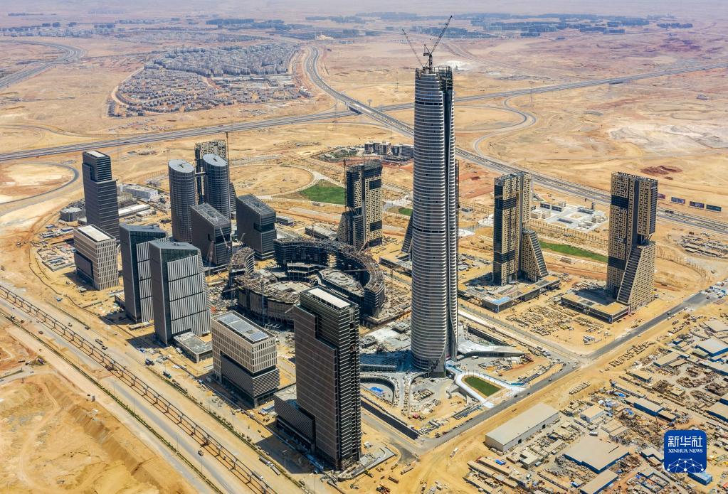 这是2022年7月19日拍摄的由中国建筑股份有限公司埃及分公司承建的埃及新行政首都中央商务区项目(无人机照片)。 新华社发(中建埃及供图)