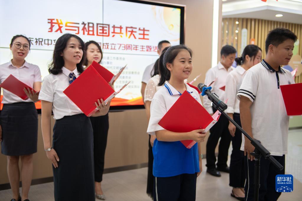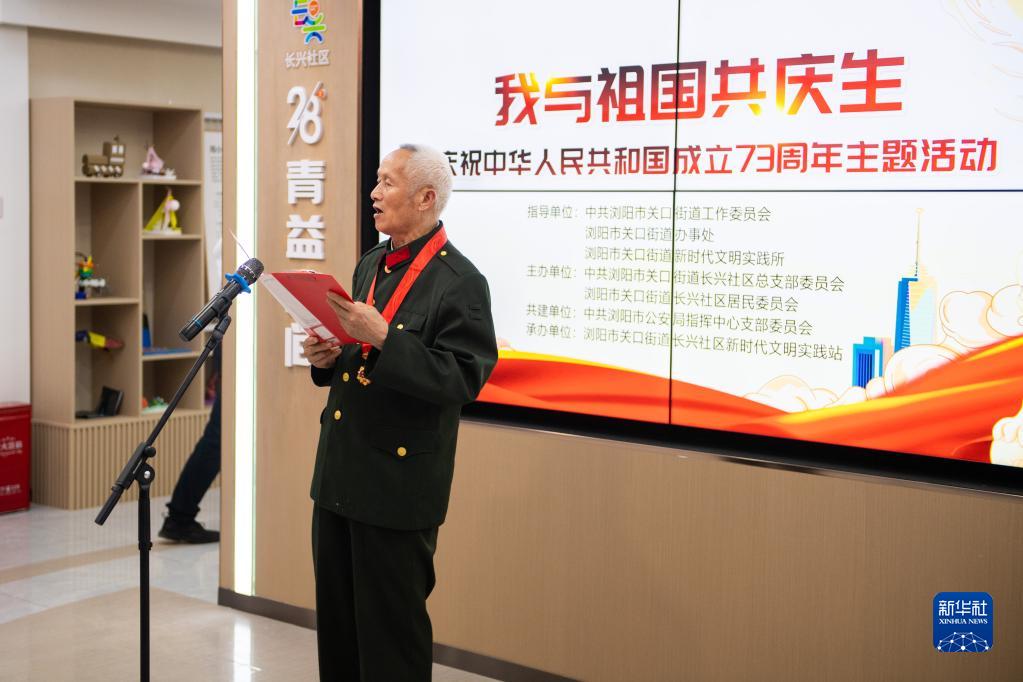 9月30日晚,“我与祖国共庆生”活动在湖南省长沙市浏阳市关口街道长兴社区服务中心举行。新华社记者 陈思汗 摄