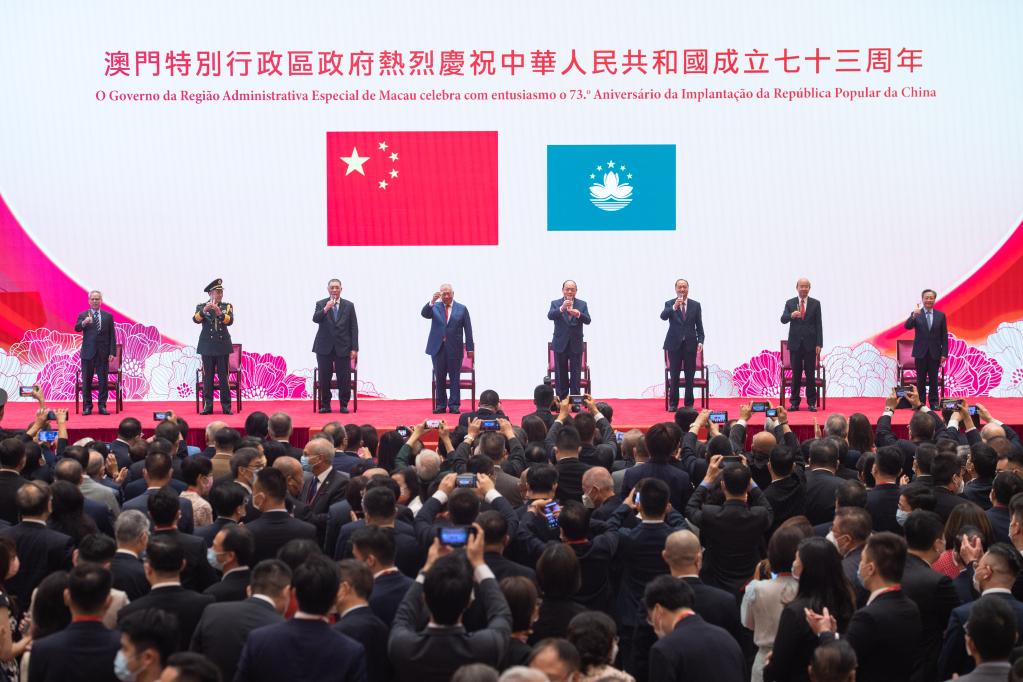 10月1日,澳门特别行政区政府举行升旗仪式和酒会,庆祝中华人民共和国成立73周年。新华社记者 张金加 摄