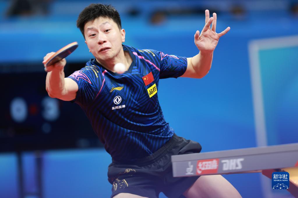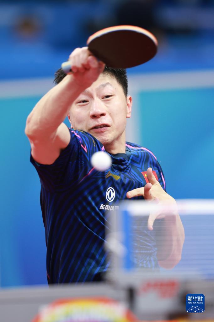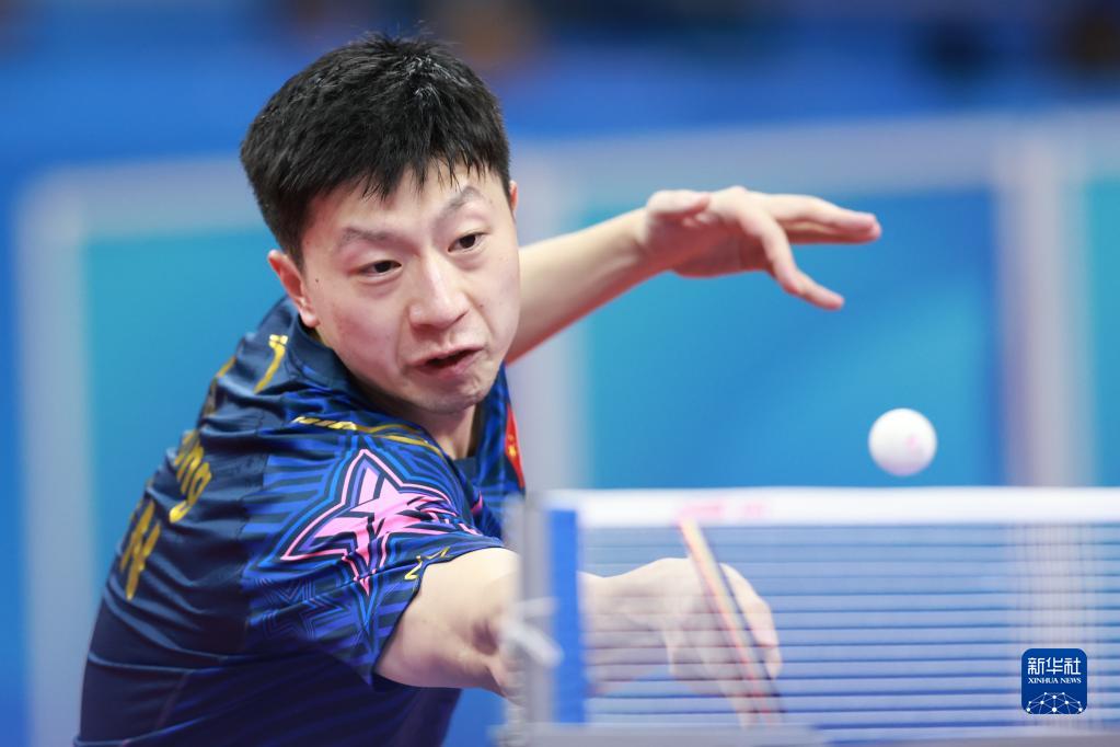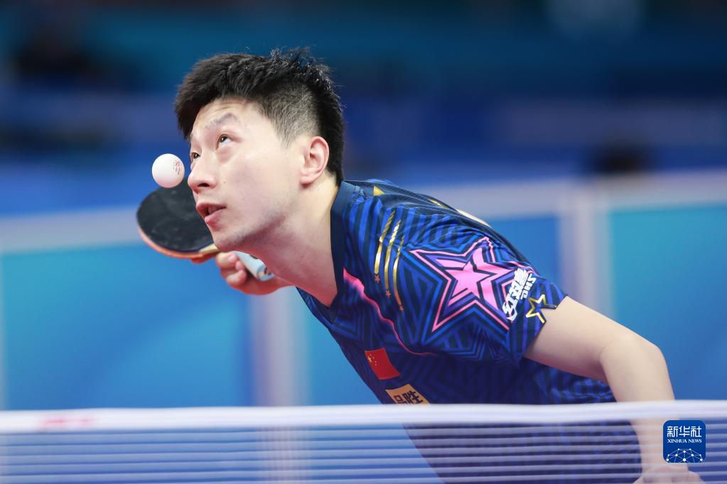 10月2日,中国队选手马龙在比赛中回球,他以3比1战胜美国队选手米歇尔·莱文斯基。新华社记者 刘续 摄
