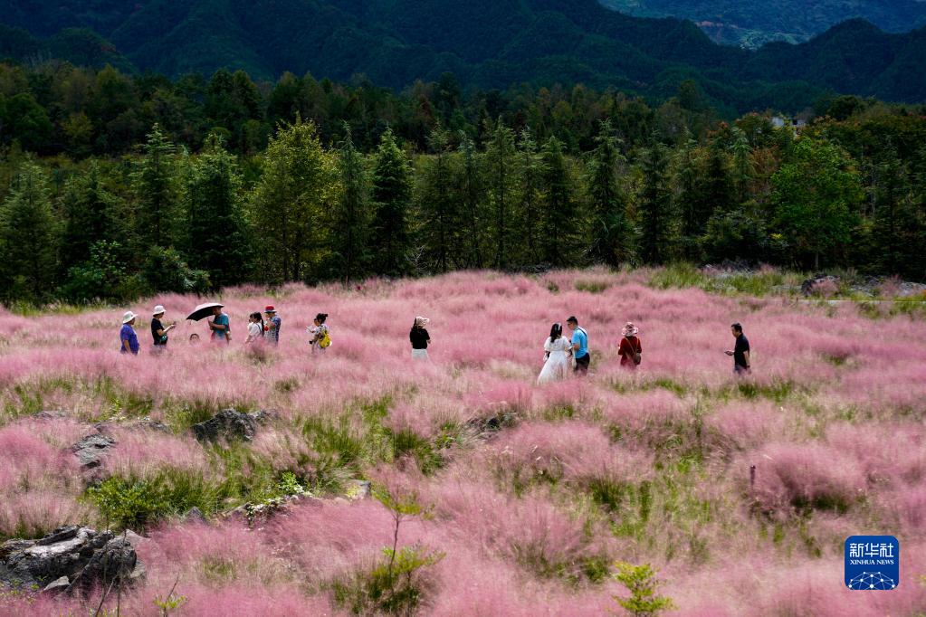国庆长假期间,正值武陵山区腹地重庆酉阳县板溪镇叠石花谷景区粉黛乱子草的观赏期,众多游客前来游览。近年来,板溪镇挖掘辖区内优势资源,将原本撂荒的石漠化荒地打造成集浪漫花海、乡村艺术于一体的生态文化旅游景区,推进农文旅深度融合。