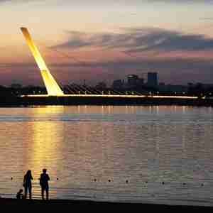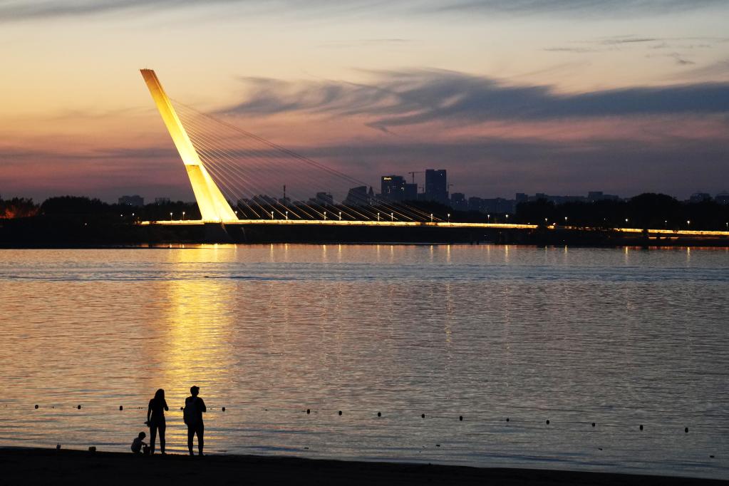 图为哈尔滨市民在松花江畔欣赏傍晚江景。新华社记者王建威 摄