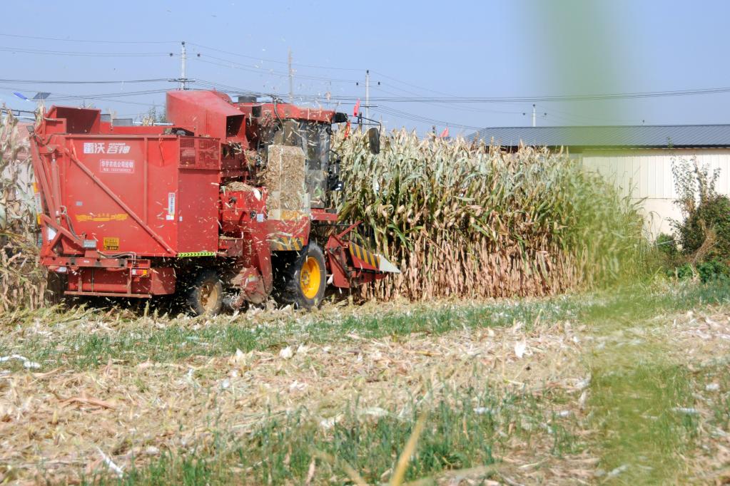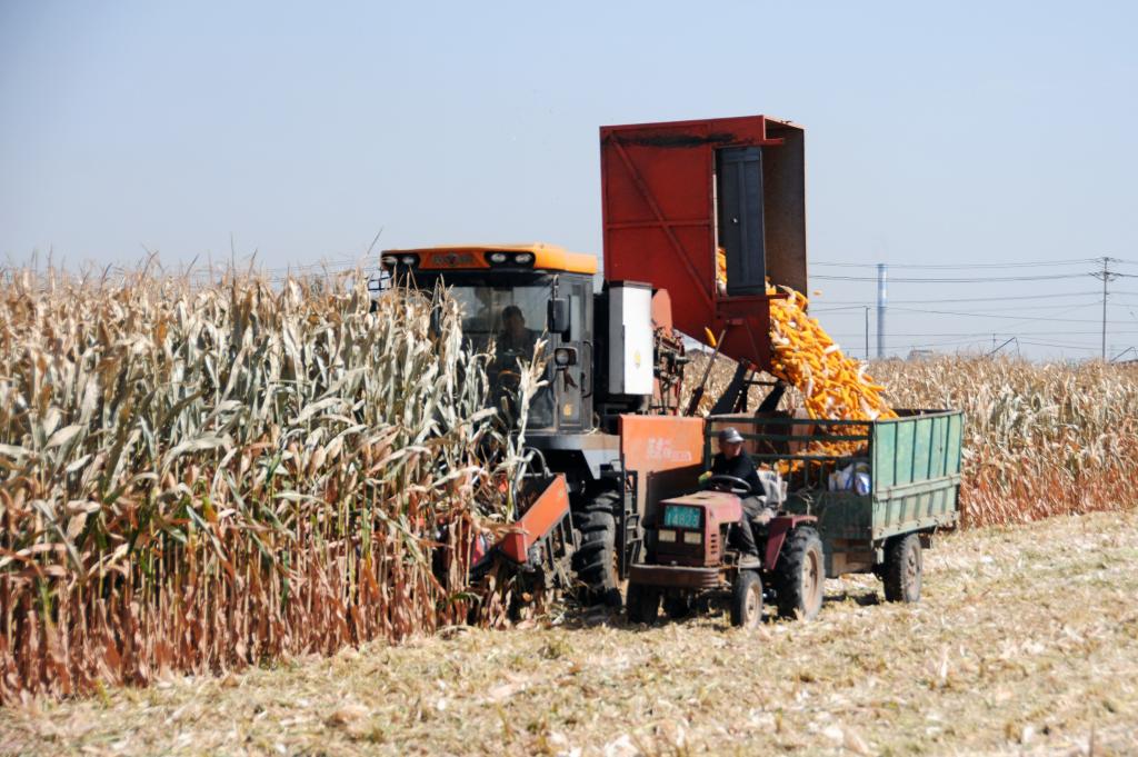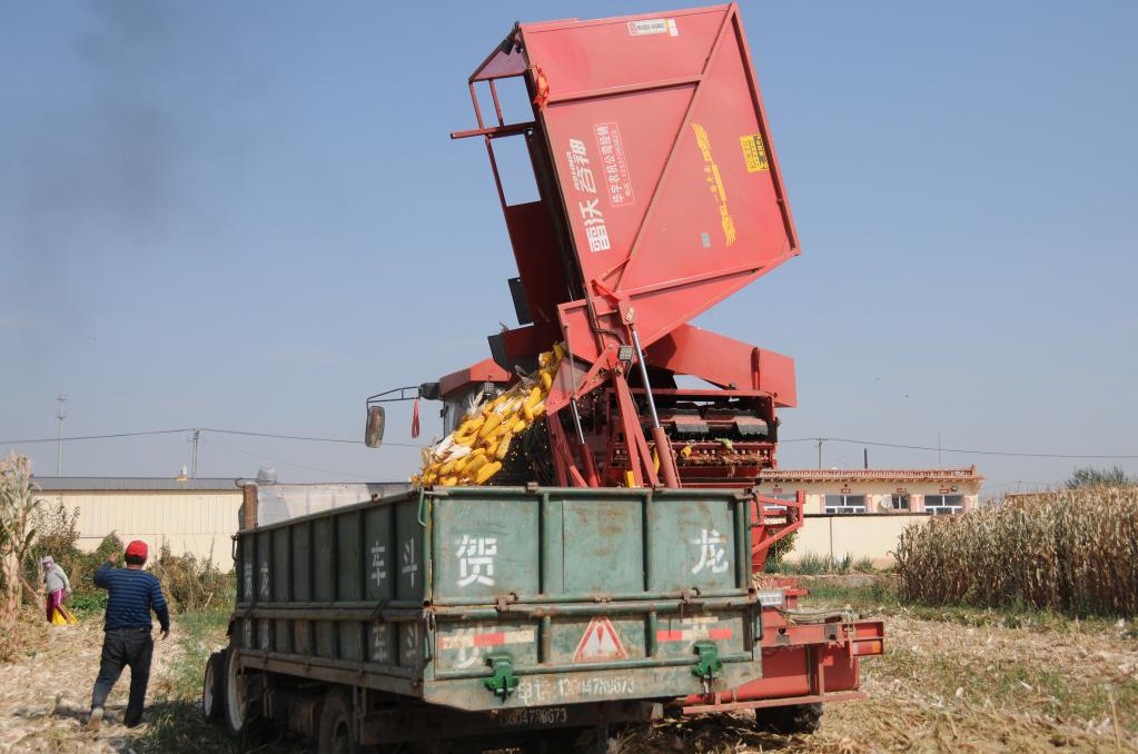 临河区干召庙镇黄济村村民收割玉米。(新华社记者李云平 摄)